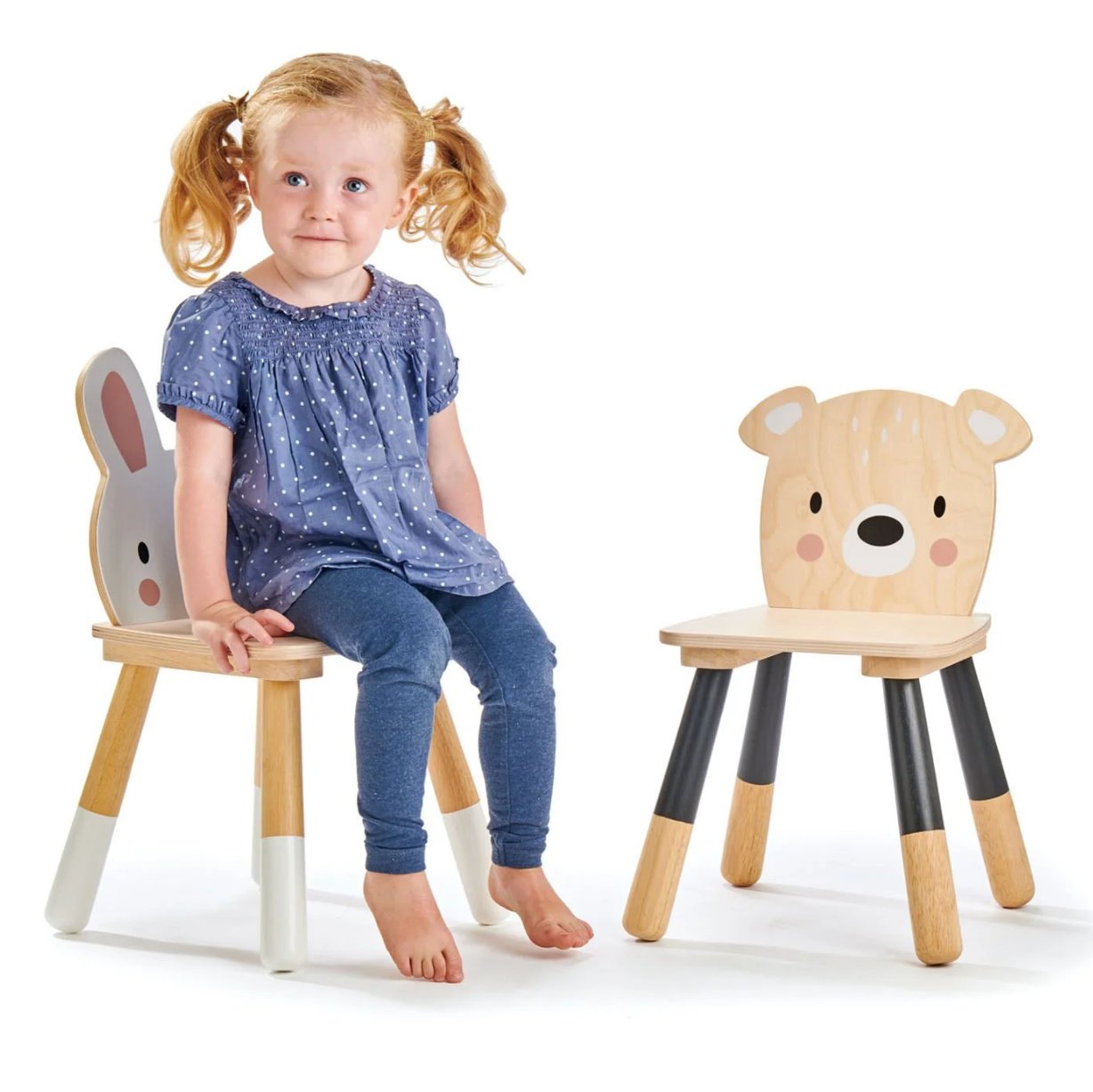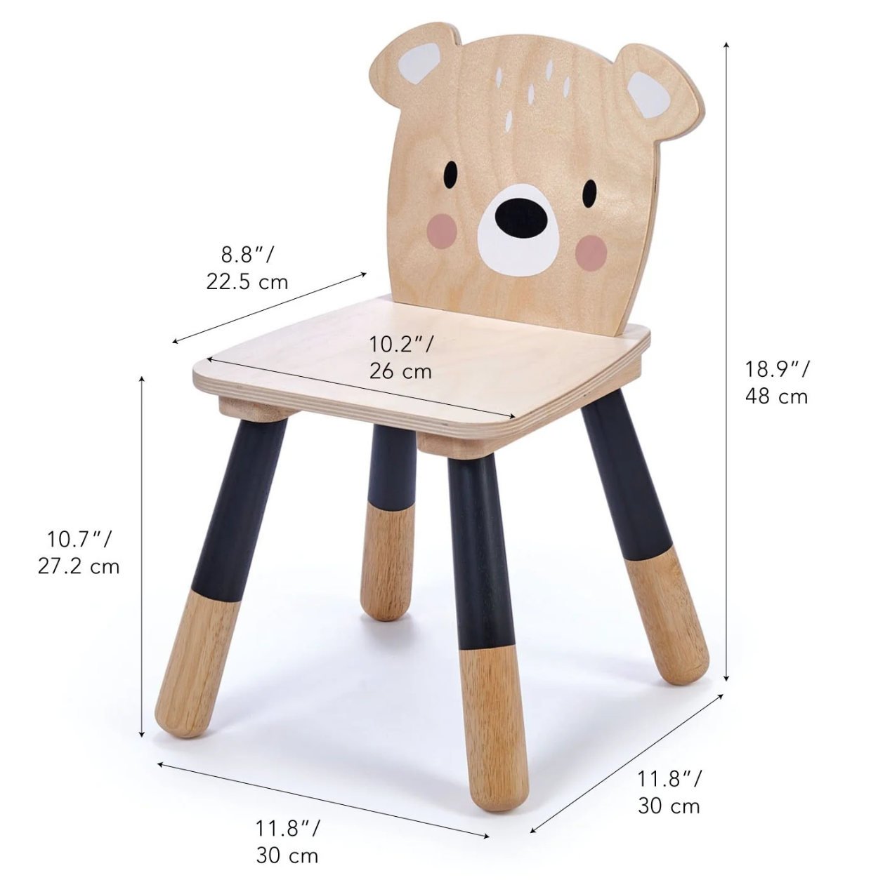 Elegante silla infantil con forma de oso, fabricada en madera contrachapada de la mejor calidad.